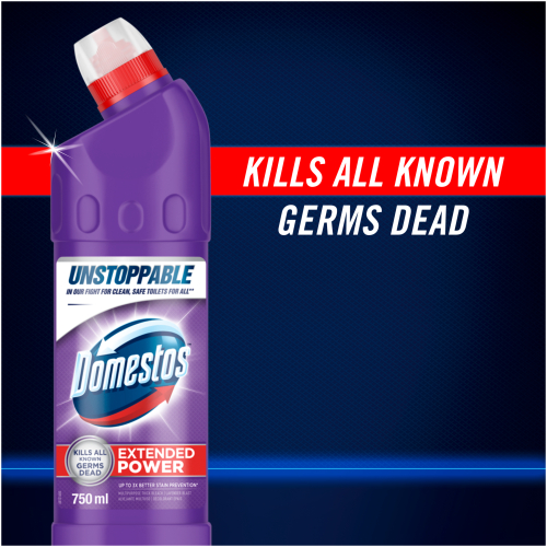 - With a fresh fragrance and strong germ-killing formula, Domestos bleach can be used throughout your home for everyday hygiene.